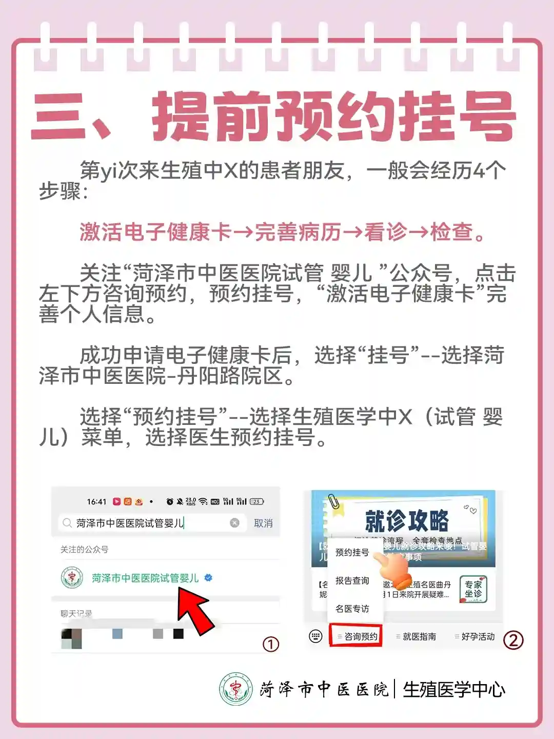▶️收好这份菏泽中医医院生殖中心试管初诊攻略,了解初诊挂号、缴费、检查、取报告注意事项,帮助你快速完成检查,顺利建档进周🎈。