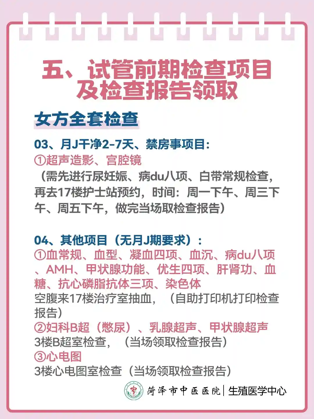 5⃣️女方试管检查项目及取报告流程(P8-P12)