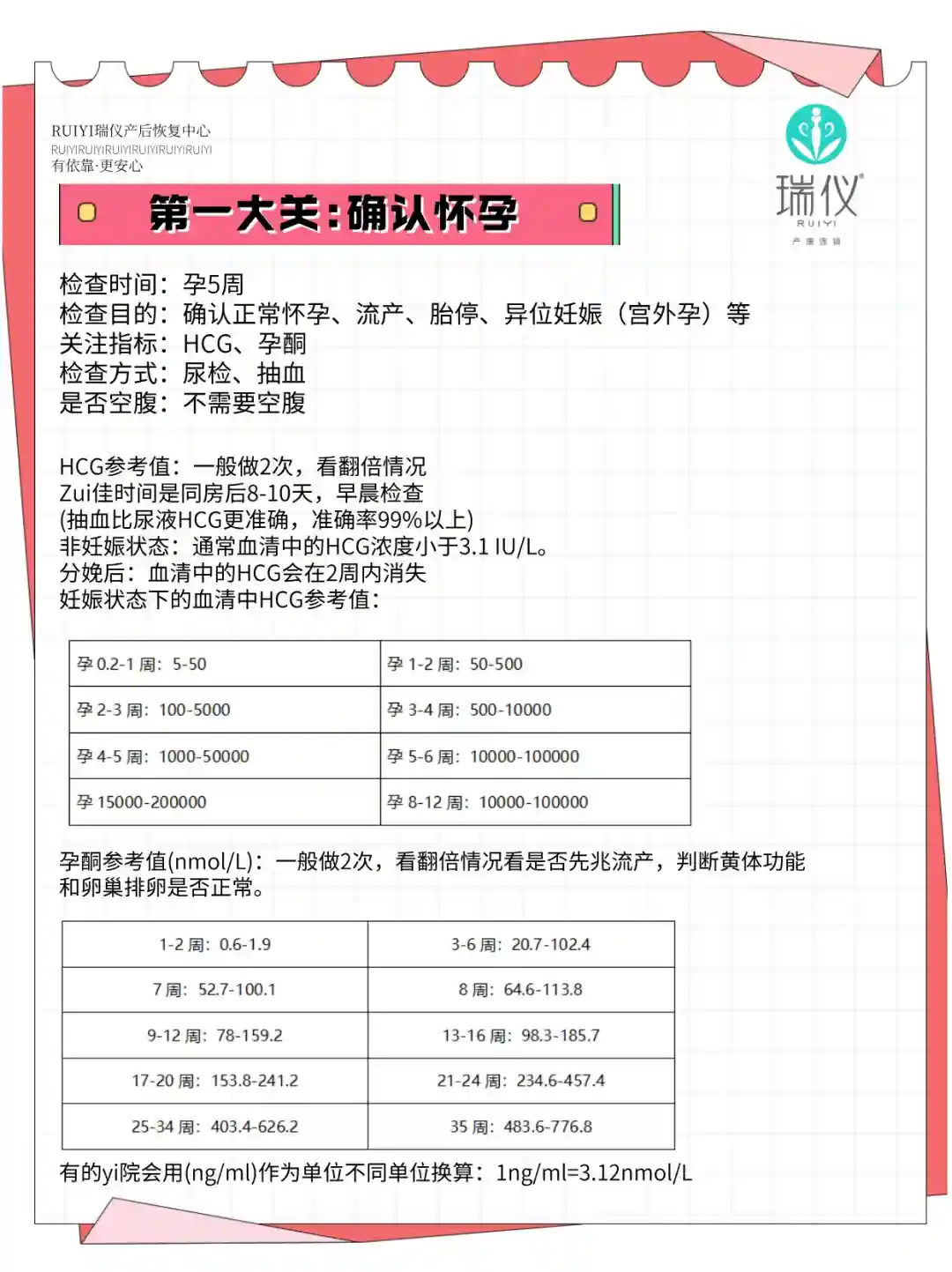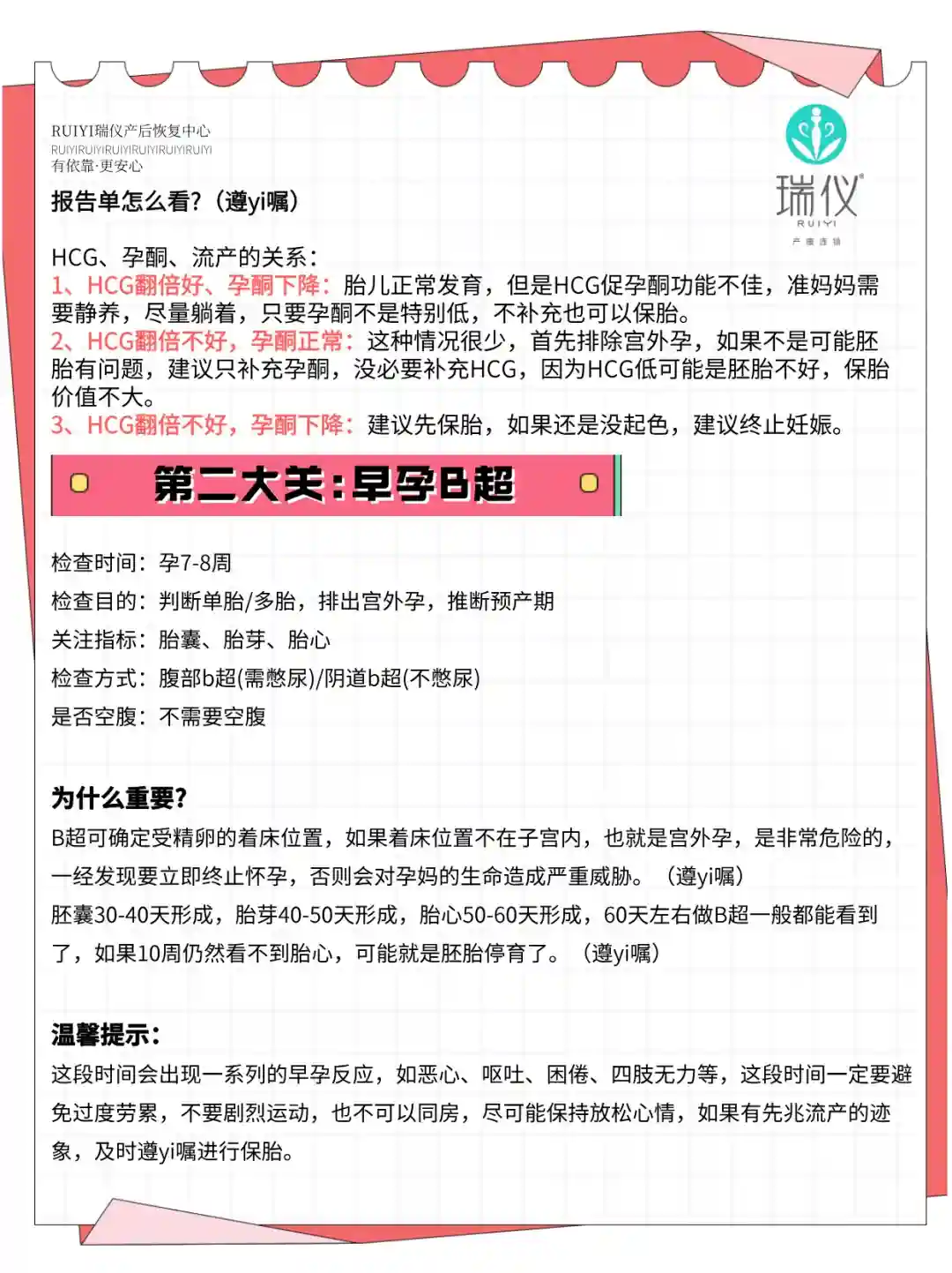 ·孕 5 周:尿检 + 抽血查 HCG、孕酮,看翻倍判断胚胎发育。HCG 翻倍好孕酮降,静养即可;翻倍差孕酮低,遵yi嘱保胎👶