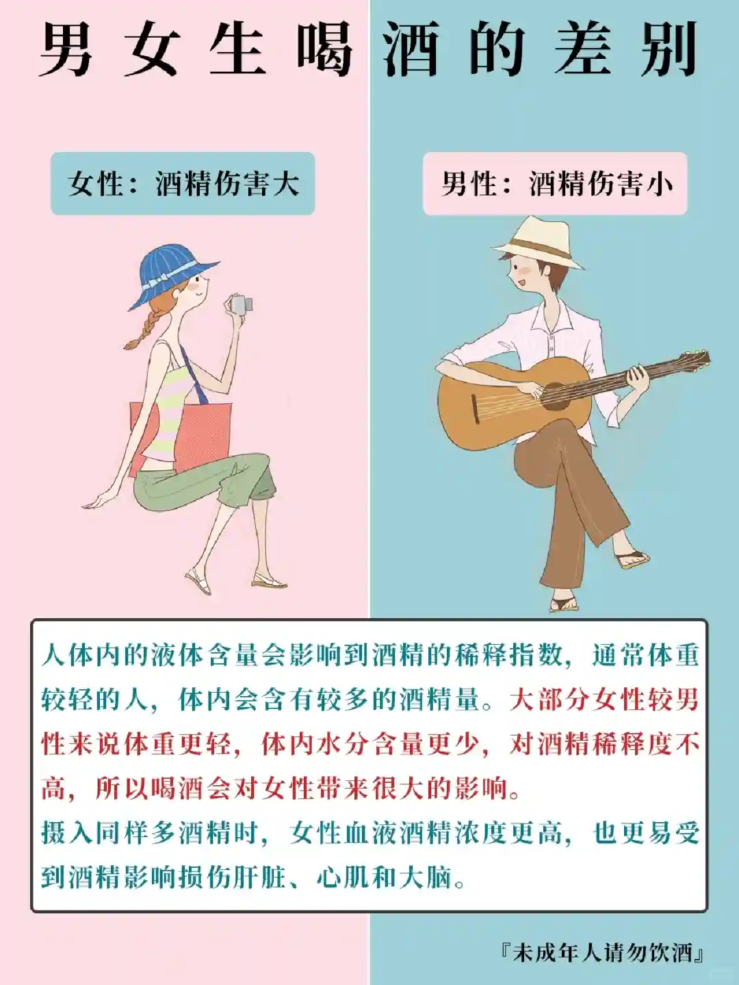 1⃣酒精对女性的伤害比男性更大