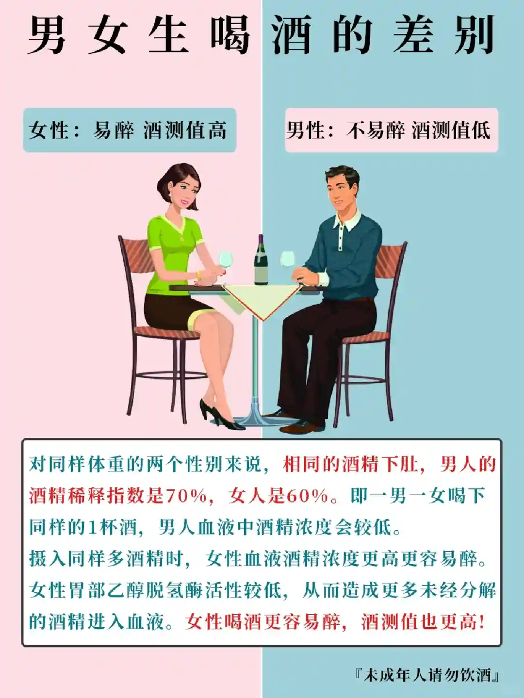 2⃣女性更容易醉,酒测值也较高