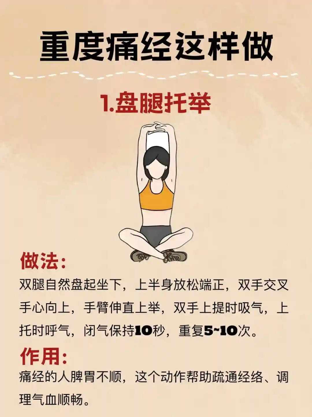 1.盘腿托举:痛经的人脾胃不顺,这个动作帮助疏通经络、调理气血顺畅。
