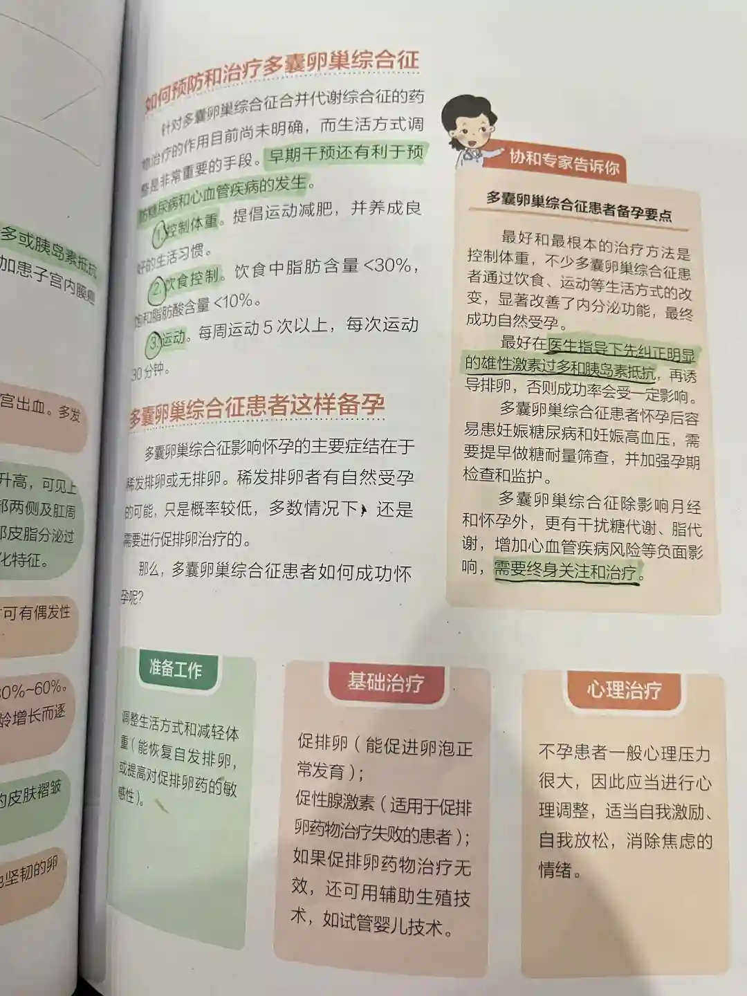 多囊综合症:首先孕前要纠正胰岛素抵抗,雄激素过高,血糖血脂,还有体重要控制在BMI标准范围内;然后饮食上少油少盐,烧烤甜品火锅奶茶咖啡都要戒掉,牛奶也要少喝,控糖;再是要运动,一周至少150分钟运动,推荐运动🏊,瑜伽,快走,慢跑,跳绳,Hiit运动;孕后要积极保胎。
