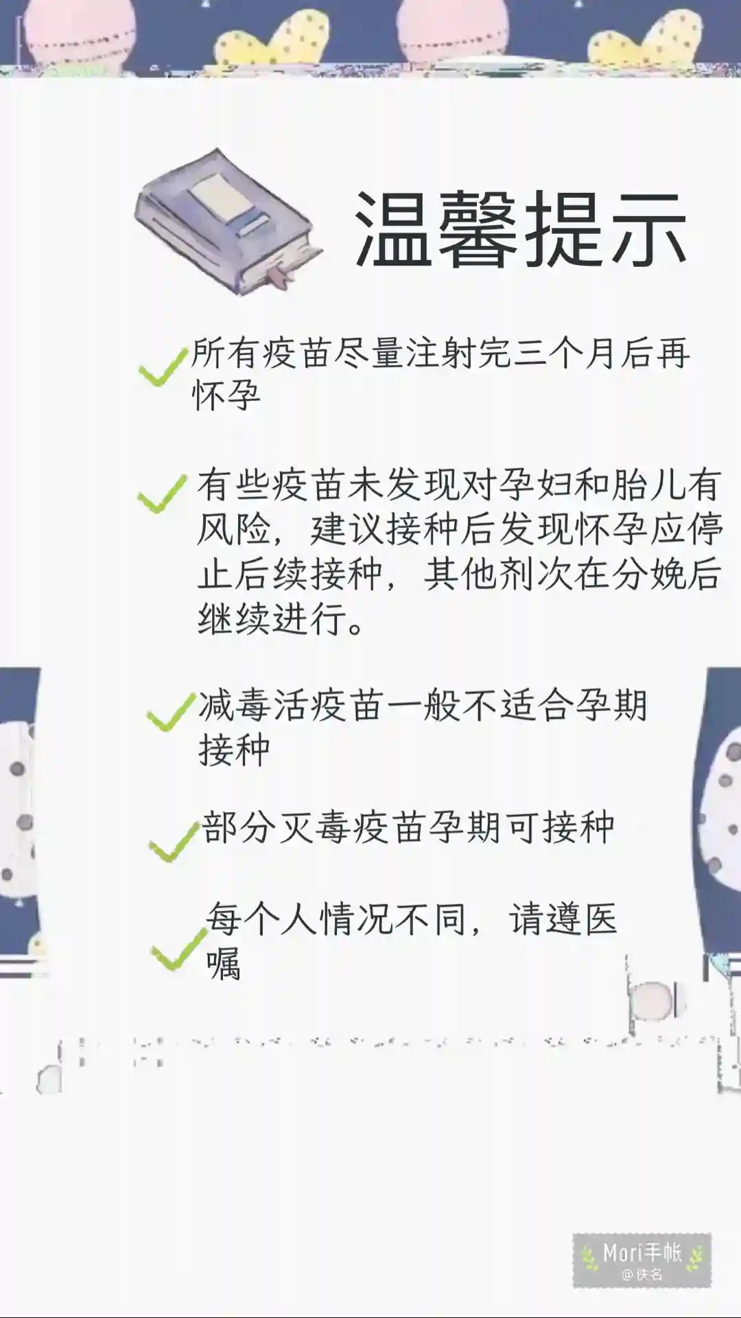 ✨如果备孕妈妈患有慢性病(如心脏病、肺病、糖尿病等)或免疫系统受损(如感染HIV)等情况,作为肺炎球菌感染的高危人群,遵医嘱是否接种
