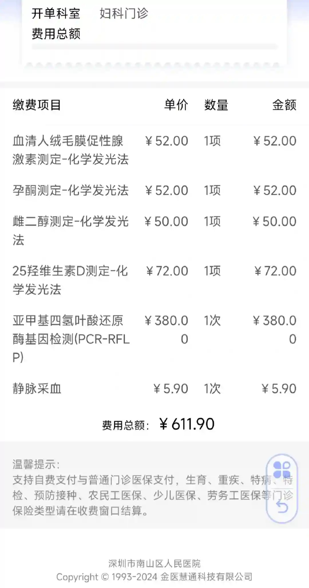 💪💪💪医生推荐我我检查了这些,社保刷了611.9,价格都在上面,还是比较清晰透明哒~