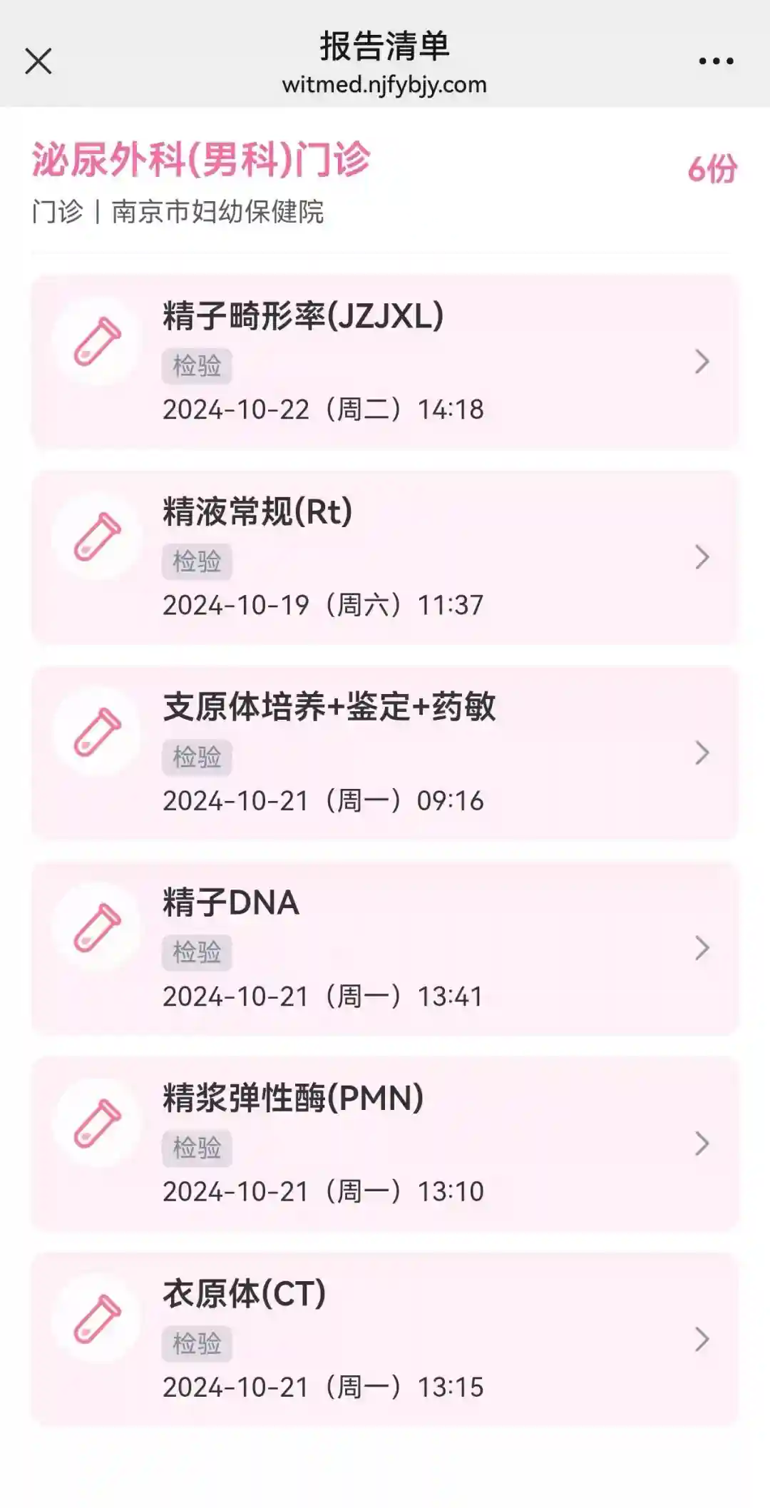 对象挂的是:南京市妇幼保健院公众号-患者通道-预约挂号-泌尿外科。注意男生需要禁欲3-7天去检查。医院有专门的取米青室,出来之后拿给医生就结束回家等结果。