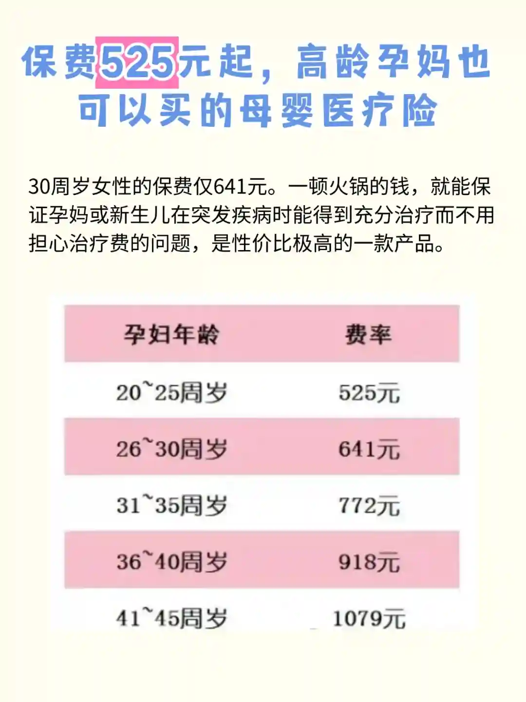 🌷 保费525元起,高龄孕妈也可以买的母婴医