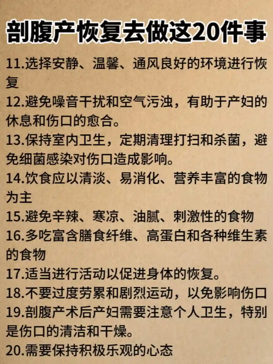 剖腹产术后不要总是不动,可以适量做有氧运动,每天坚持半个小时到一个小时之间就可以,时间根据自己的情况定。