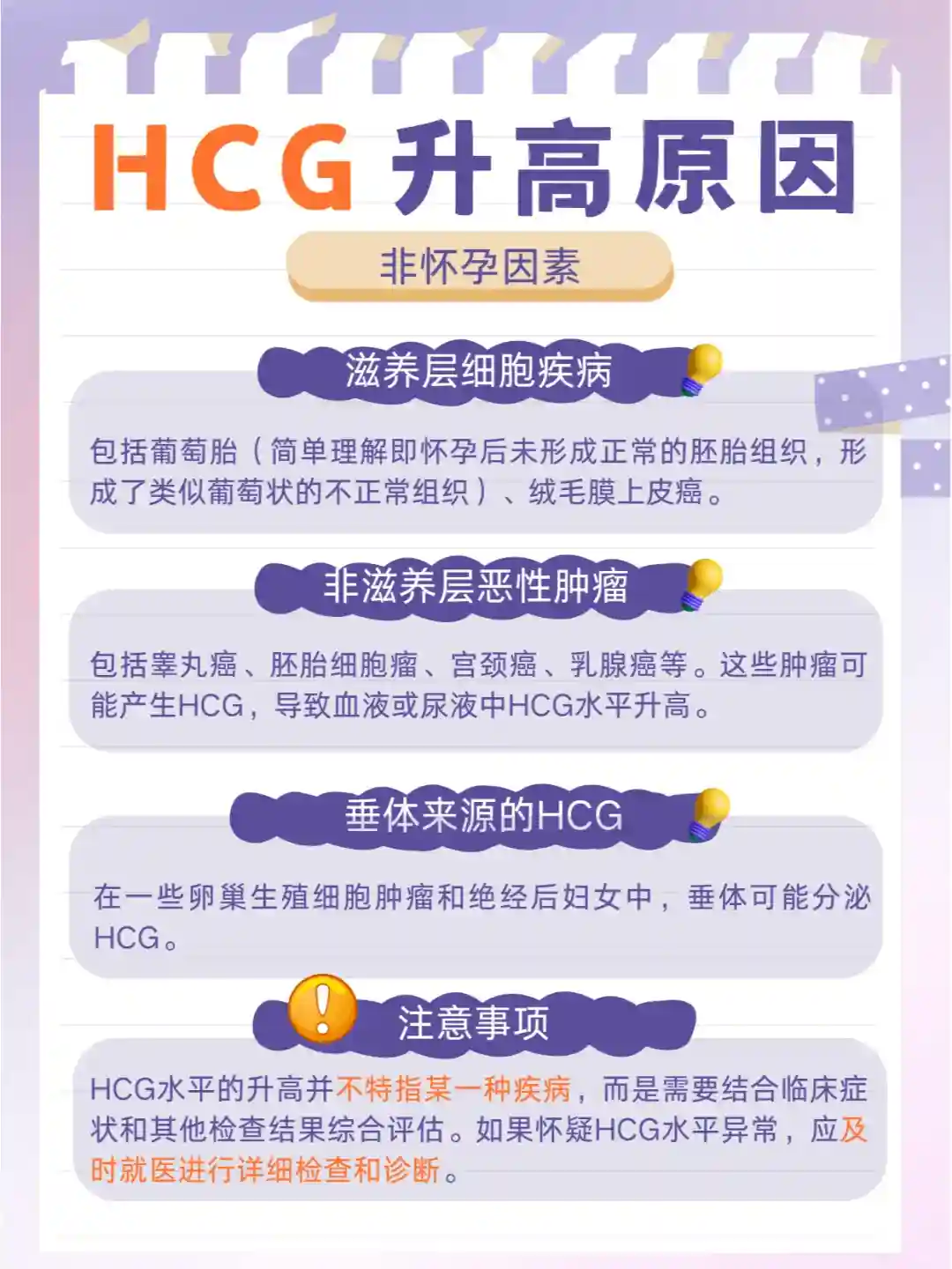 如确认未怀孕,HCG升高可能受如下因素影响: