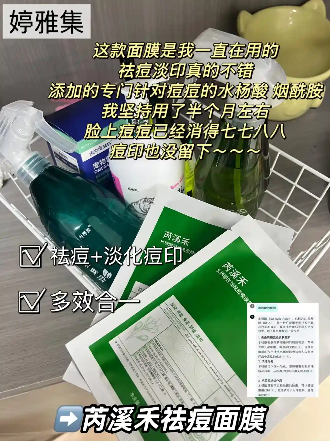🌸芮溪禾祛痘面膜 添加的进口专利成分!!水杨酸和烟酰胺可以调节痘肌,帮助快速祛痘淡化痘印。这个月初到现在已经用空三盒,现在脸上痘痘消得很干净,痘印也没有留下~