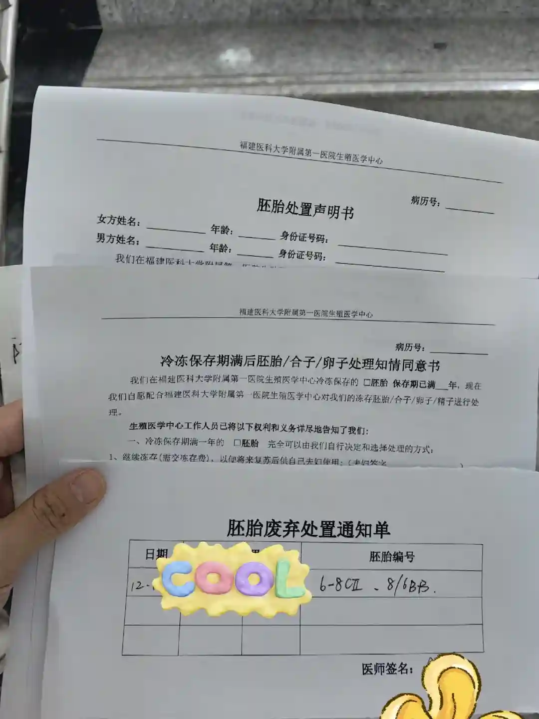 1️⃣奥体中心6楼导诊台找护士拿放弃胚胎同意书,找自己的主任医生签字。