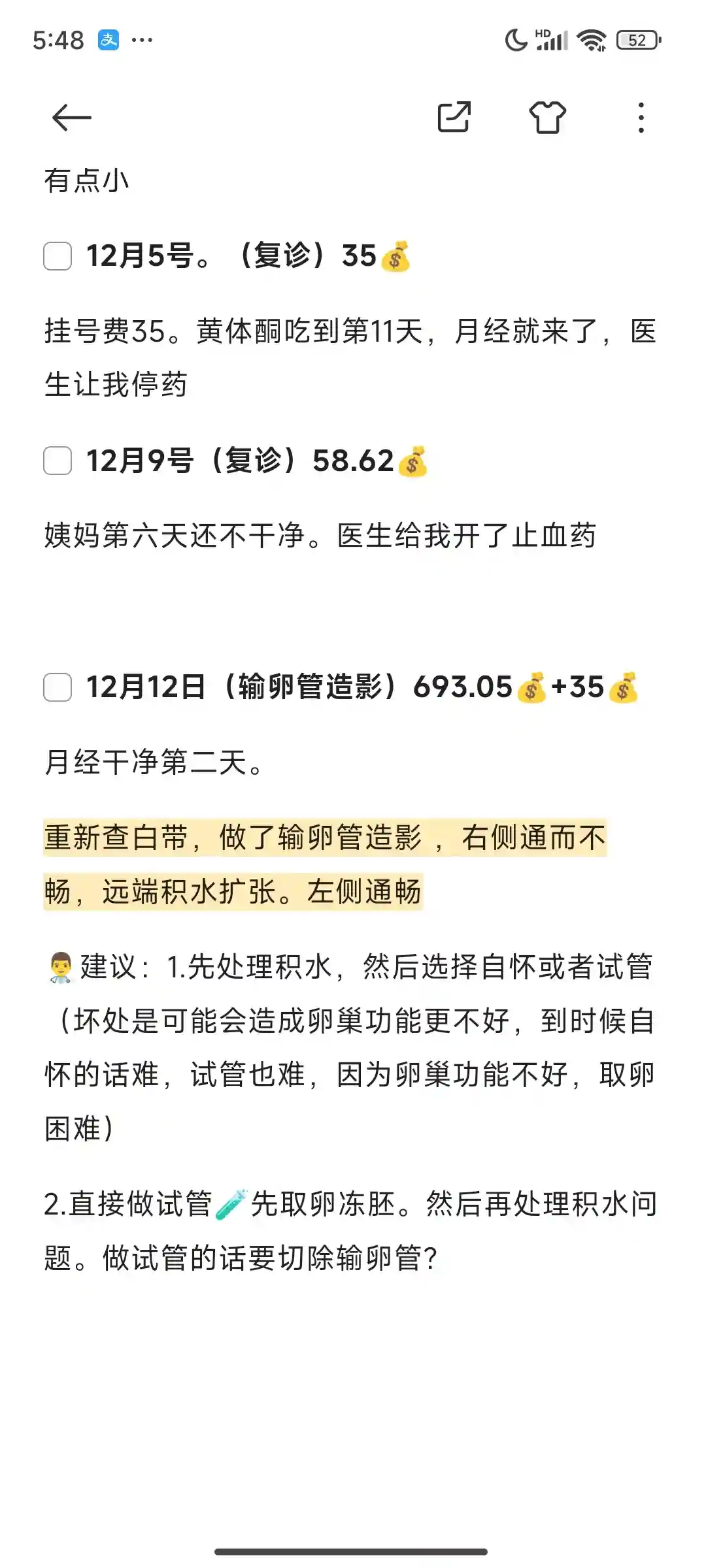 【造影结果】左侧卵巢通而不畅,远端积水扩张,右侧卵巢通畅。双侧是通的我一开始很开心,奈何有积水。我真的崩溃了!!!!所以医生建议我试管,因为我amh值比较低才1.32,卵巢储备不好。