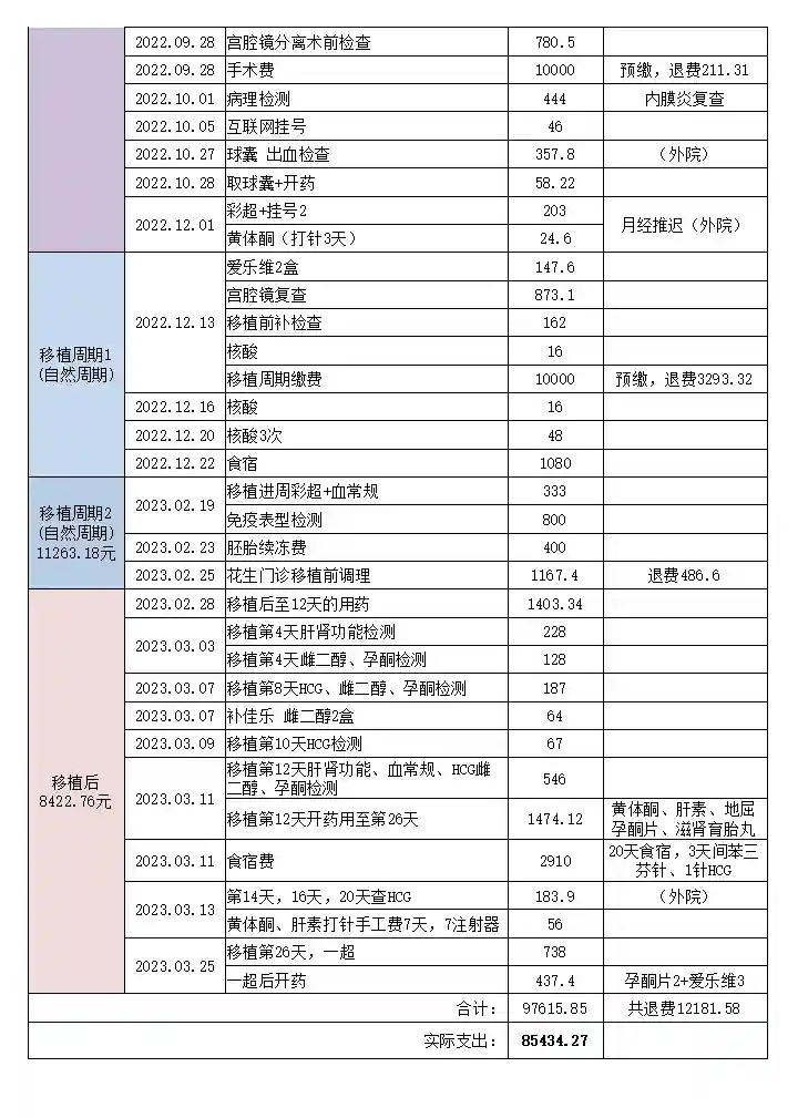 以上是我自己的实际费用,还是记录得比较详细了,可以给姐妹们参考一下。欢迎姐妹们留言提问……