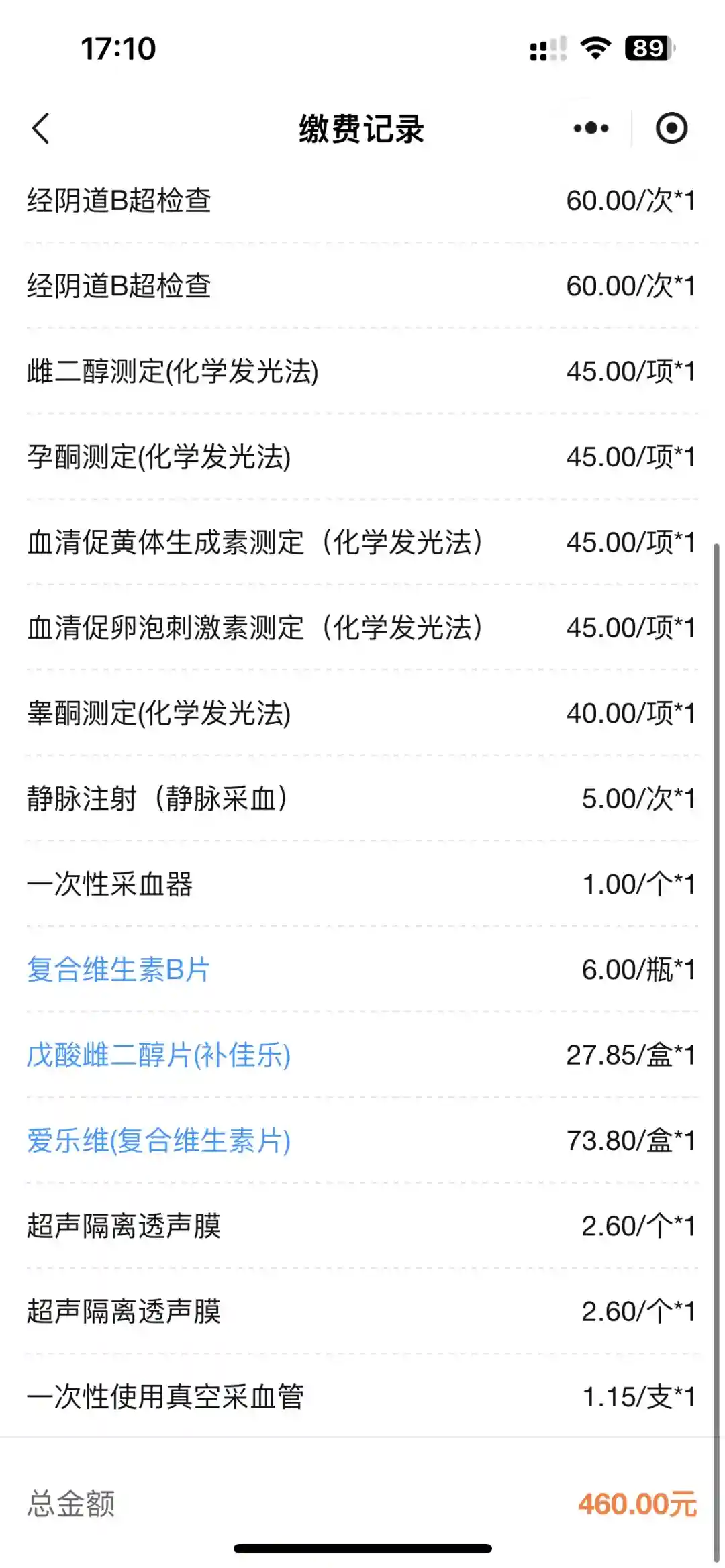 本次费用:460元(B超、下次抽血单、爱乐维、复合维生素B、补佳乐)#试管婴儿 #试管经历 #试管经验分享