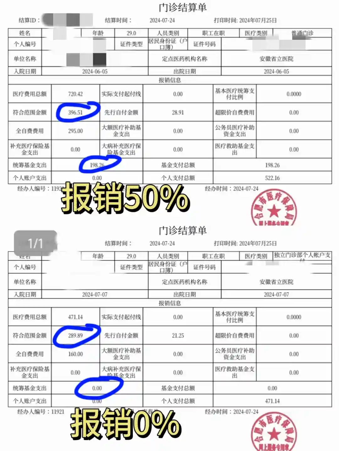 当时觉得很疑惑,为什么同样的检查项目4月能报,7月就不能报,为什么报销比例这么低?于是我打了合肥市医保中心的电话,咨询是不是生殖科的费用报不了,得到的答复是只要达到门诊起付线,在医保范围内的就可以报销。