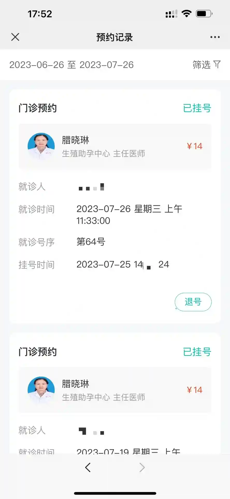 首先1⃣️挂号:我是在如图一微信小程序搜索新疆医科大学第一附属医院 点挂号 -(充值20 50随便因为挂号账户得有钱,不然后面点到要挂的医生还得退出来缴费)-预约挂号-搜索生殖助孕(在这里面选择你想挂号的医生)奥对了,夫妻俩人是可以挂一个号看的。