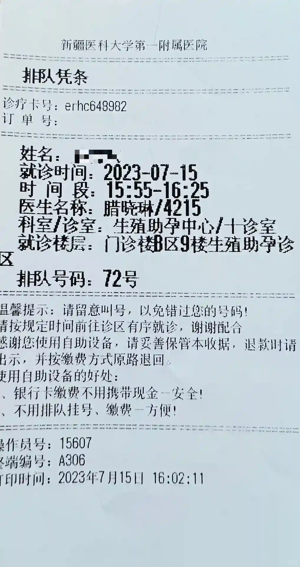 2⃣️检查:B区九楼分诊台买个病例(如果没有的话)在自助取号机上取号,需要用到小程序在新疆医科大学第一附属医院里的个人中心点开 获取 电子健康码)扫码取号