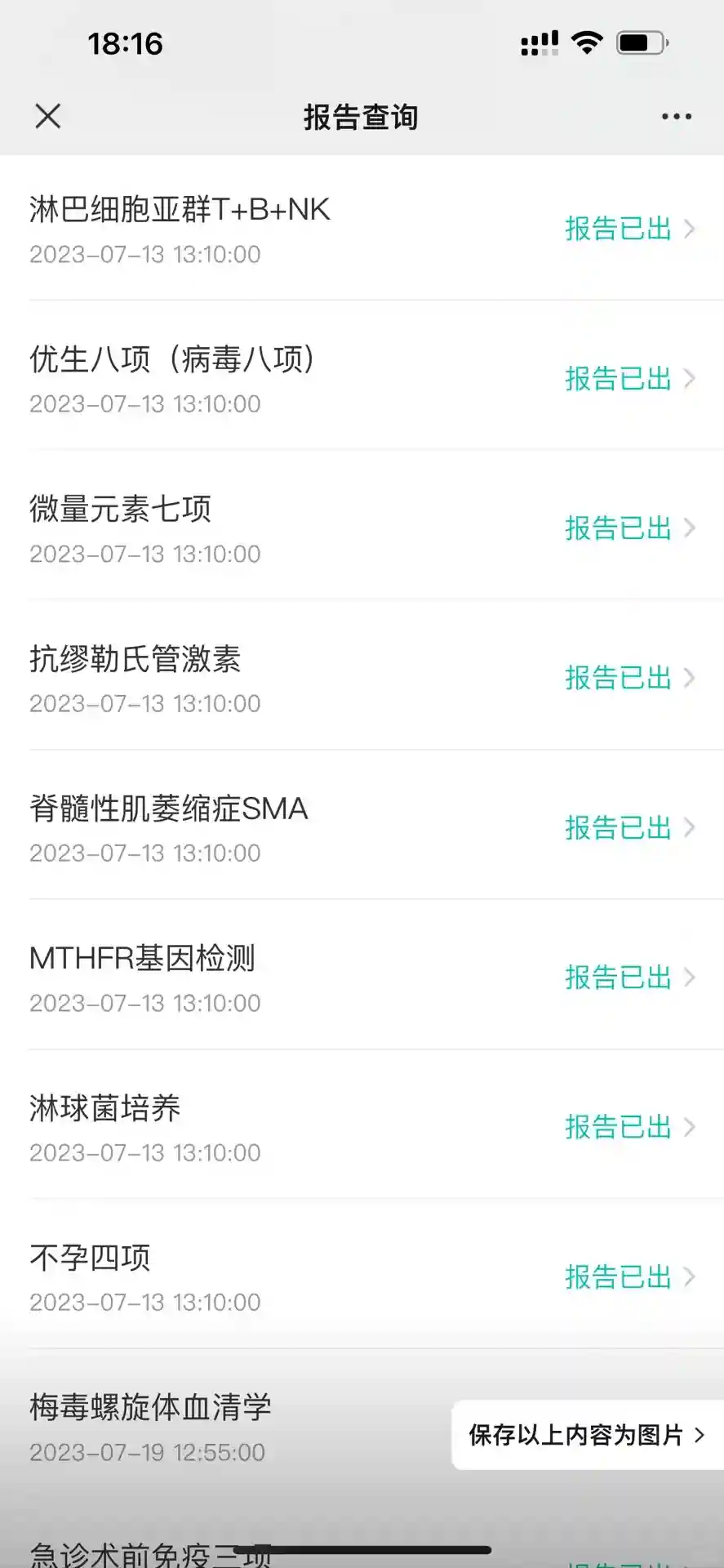 3⃣️费用:这一项因人而异 我总共做了22项检查。(图4 5 6)花费4987.59 医保报销完自费1250.71。我老公的七项检查(最后一张图)总共花费1850医保报销完自费64(这就体现出了灵活就业和单位社保的区别了。)4⃣️检查结果:可以在小程序上获取检查报告,一般这些检查完都得等下周去医院获取纸质报告后再找医生看报告。当然还得顺序1⃣️ 挂号 找医生看。
