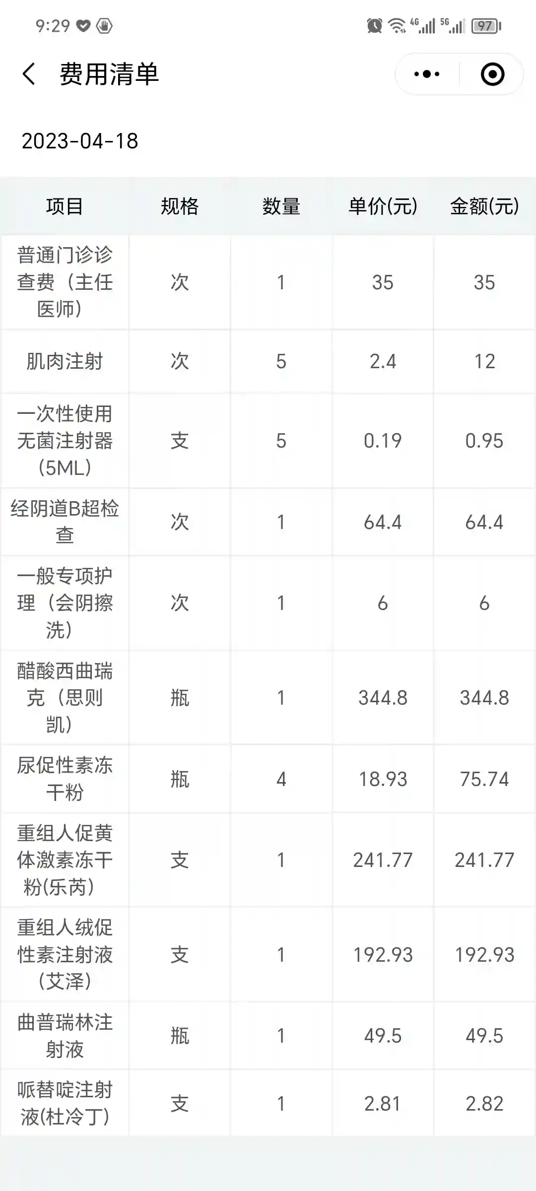 4月18日:早上:2ml生理盐水融4只丰源 肌肉注射(屁股);思则凯 皮下注射(肚子);乐芮 皮下注射(肚子) 晚上:艾泽 皮下注射 (肚子);曲普瑞林 肌肉注射(屁股) 一天5针