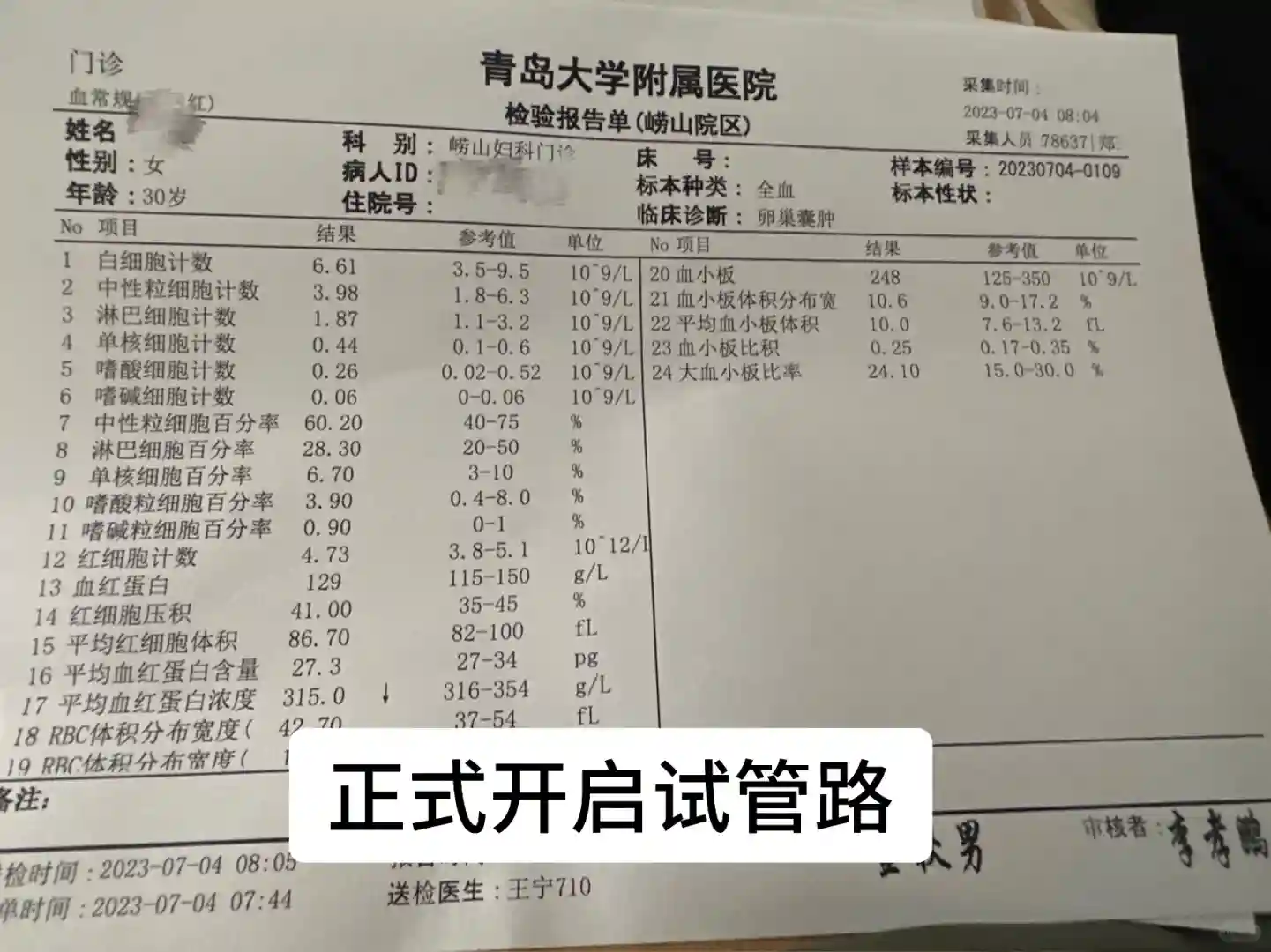 也是经一个朋友姐姐推荐,听说东部市立生殖科一位主任非常擅长此方面的指导,在做了一些咨询和检查后发现,卵巢部分长了备孕生子的女性头号天敌——巧克力囊肿(子宫内膜异位症),主任坦言,基本90%的巧囊患者最终都会选择试管,因为巧囊的出现会对输卵管有很大的影响。巧囊的起因至今是世界难题,具体的表现百度阐述的也很明白。于我自己而言,我认为巧囊的生成与休息、心理、饮食关系很大。在疫情后的很长一段时间里,我的作息昼夜颠倒,吃饭也是有一顿没一顿,体重曾一度上不到三位数(身高170的标准山东女孩儿)。而且在此之前,差不多有一年的时间里,大姨妈的量和周期都有明显的缩短,这些都是巧囊的一些典型表现,只是一开始自己不知道,也没有重视。待到发现的时候,囊肿已经长到满足手术标准的5cm。