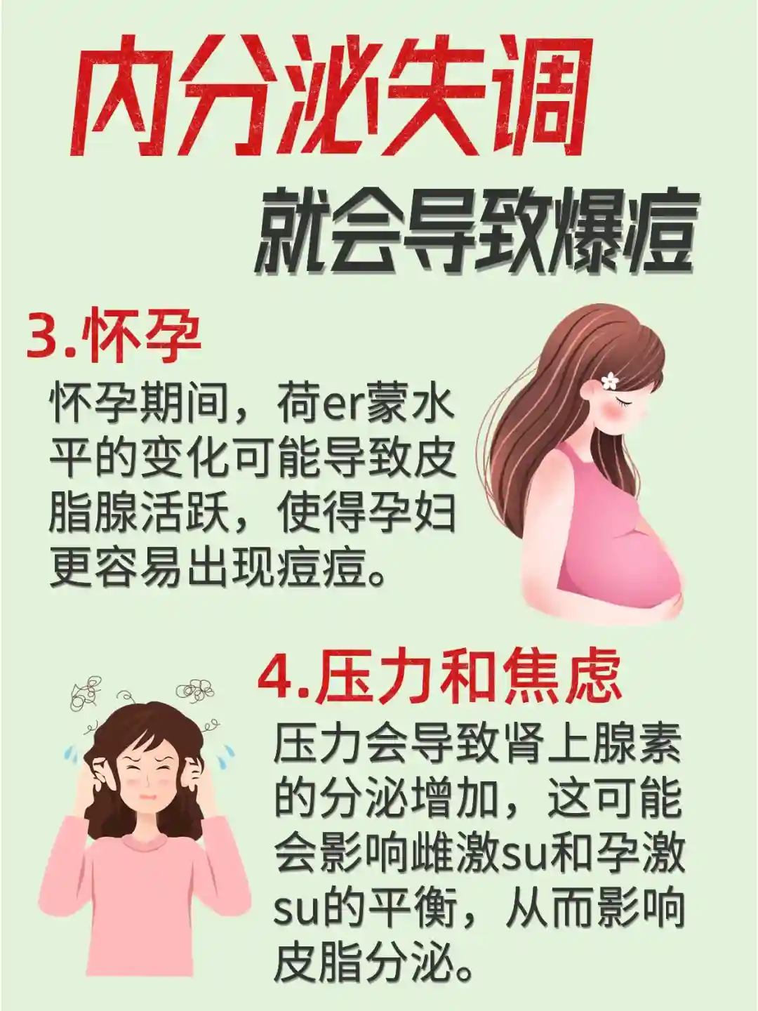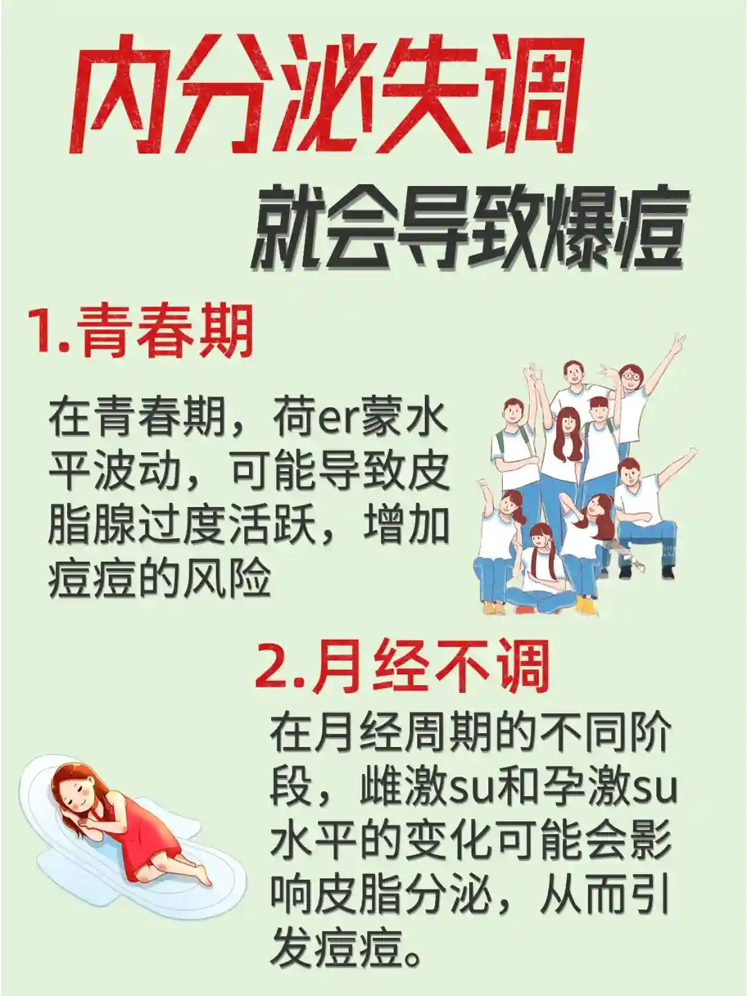 在月经周期的不同阶段,雌激su和孕激su水平的变化可能会影响皮脂分泌,从而引发痘痘。