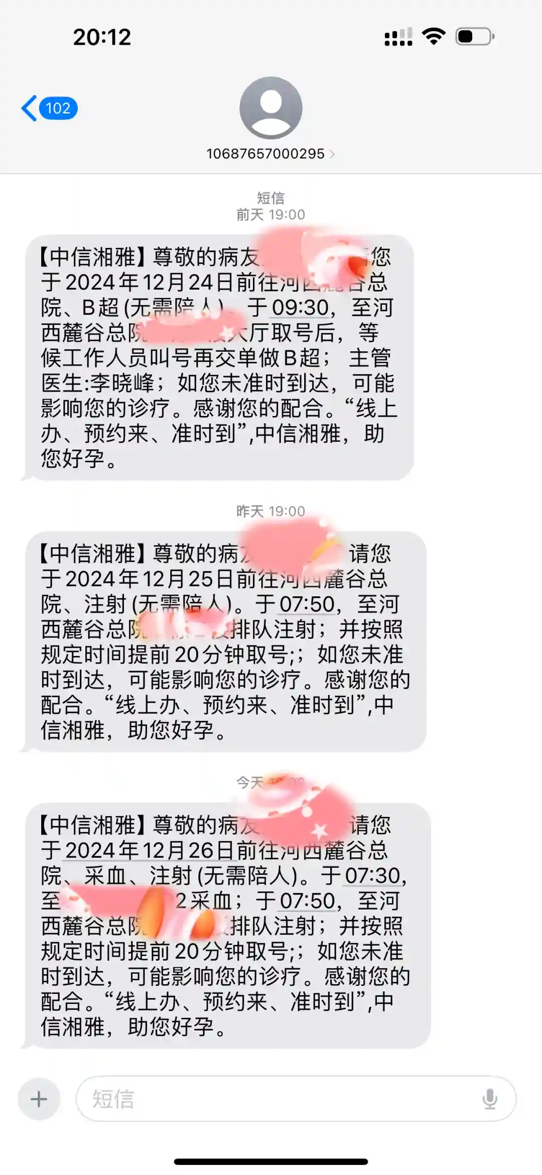 正式促排后,第二天的安排都是在前一天晚上七点准时短信通知,中信流水线作业已经很成熟了。