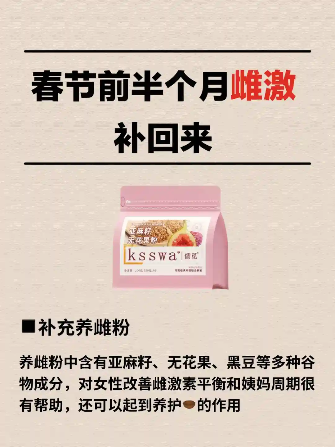可以选择含有多种植物雌激素成分的养雌粉,来改善女性体内雌激素的平衡👏👏~