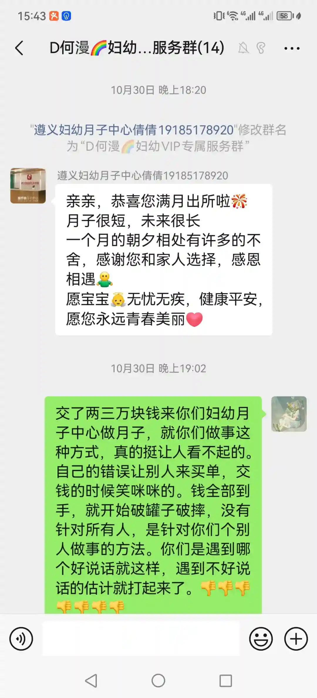 重要的事情多说几遍,太垃圾了,太垃圾了,太垃圾了,从开始交了定金的时候各种笑脸,入住了之后,厕所里面漏水,都是臭味。喊了几次处理,结果来了以后就给喷个空气清新剂。更加臭了。吃的东西也是一言难尽,一餐饭就像外面几块钱的东西一样。住了没多久,她们又因为房间不够,然后理由问你能不能提前出院,还一味地道德绑架你,你不同意就找各种人来说事,她们那个满脸玻尿酸的领导,还有销售人员,还各种甩脸色给你看。你不同意提前出所,还变成你的错了,然后每隔一会来找你说事,各种道德绑架你,一个人不行,就喊几个人来说,各种丑恶的嘴脸,看着真它恶心,那几个恶心玩意。真的不是人。太多垃圾的地方了,说起来都觉得恶心,这家店超级恶心。大家不要被骗了,不要被骗了,不要被骗了。