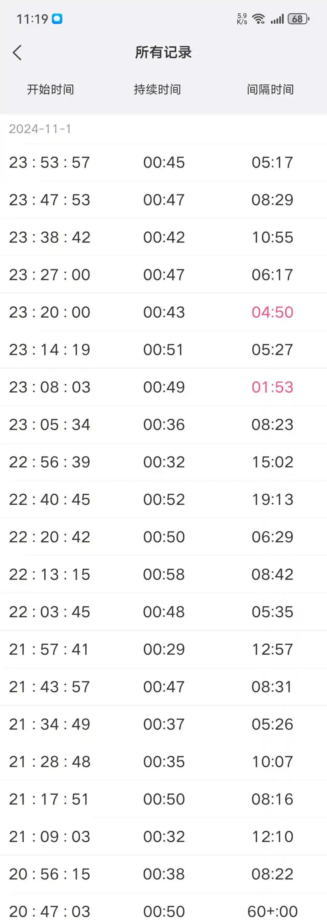 11月1日凌晨开始有比较规律的宫缩,但当时的疼痛和正是的宫缩比起来真的都不算疼,因为我平时没有痛经对宫缩的痛真的很敏感,后半夜没怎么休息,早晨7点就到医院办理了住院,当时内检医生说还是没有开指。医生给开了灌肠说刺激一下,灌肠真的超级难受,灌肠的时候处置室里还有其他孕妈在做胎心监护,当时难受的根本顾不上内心的难堪了。入院当天病房比较紧张,我们都是在医院一个空房间里等,有人出院我们才能住进病房里,很幸运中午就有单间病房了,当时白天的状态还好,断断续续有不规律宫缩,下午开始有深褐色分泌物和血块,晚上的宫缩频率和痛感比白天要强的多,又是一晚都没怎么睡。 #宫缩 #顺产真实 #人生就是一场体验