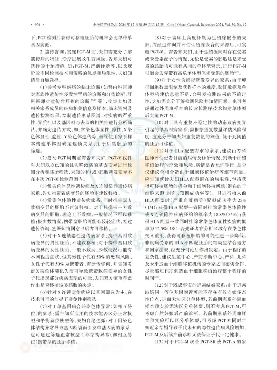 7. 当夫妇双方均为染色体结构异常携带者或夫妇一方为涉及多条染色体的复杂结构重排时, 获得可移植胚胎的概率会降低。