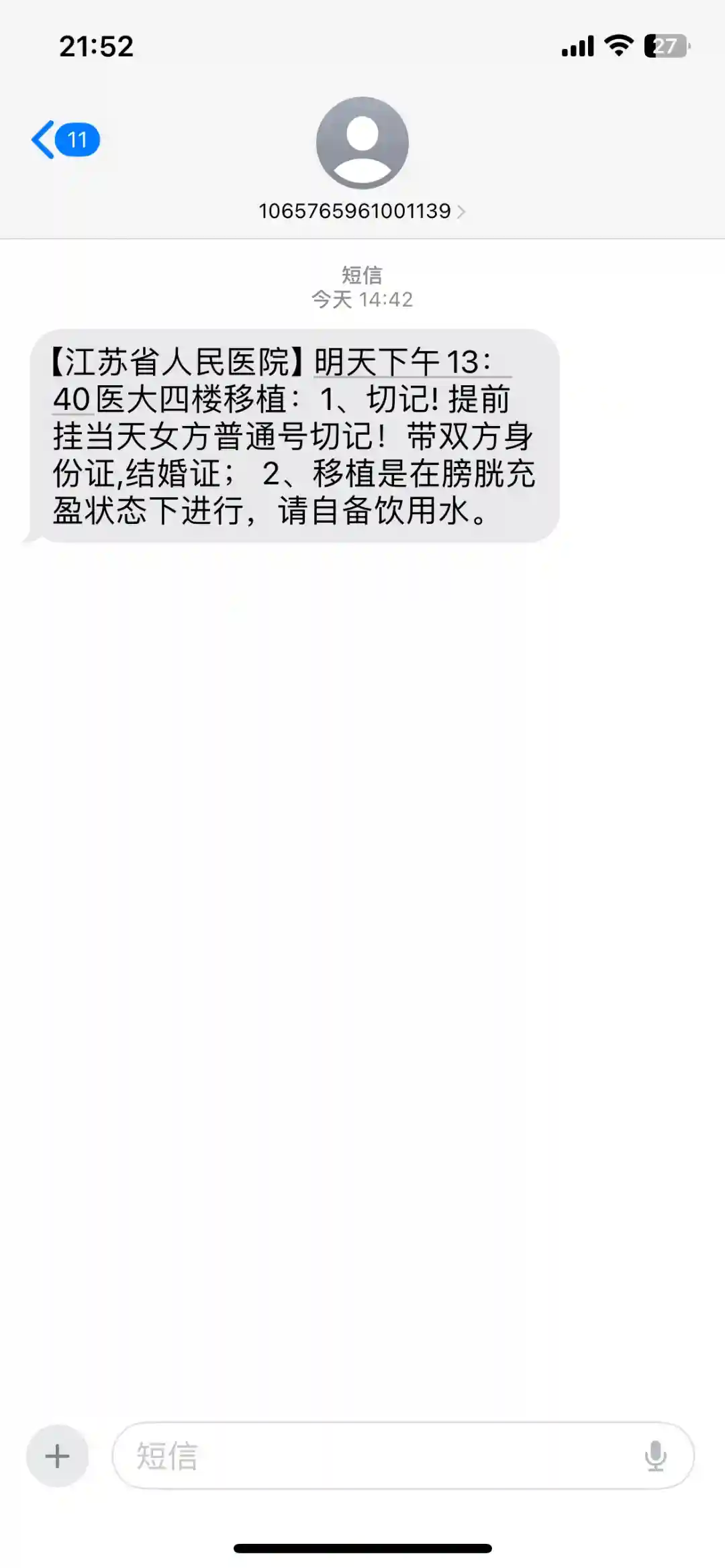 今天收到短信,直接让准备鲜胚移植了?我就很懵…我都没指望能做鲜胚的…还是说收到短信也不一定是鲜胚啊?有没有小姊妹知道的?