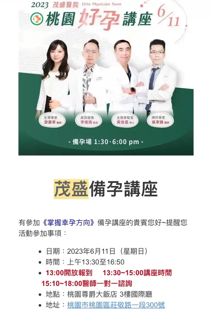 2023/6/11台中茂盛醫院試管講座桃園場 三代试管是短方案吗